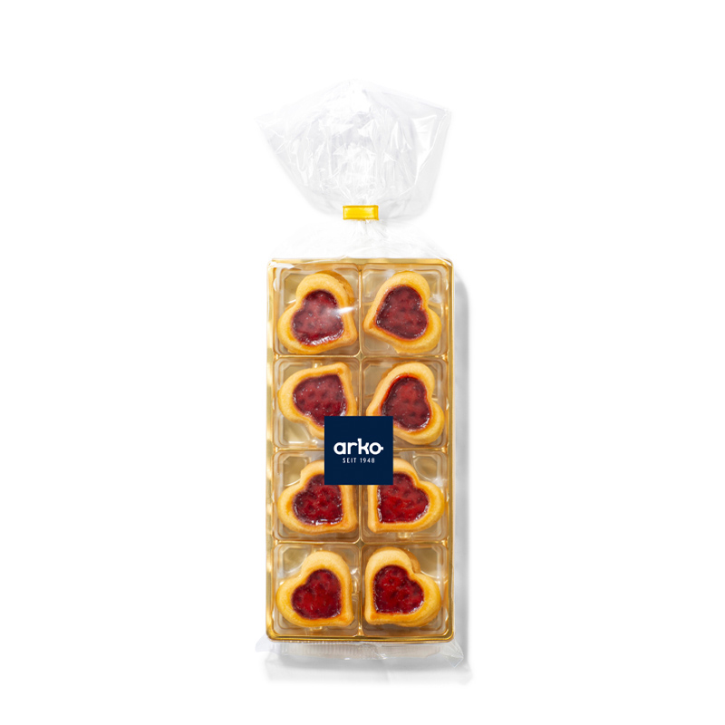 Die arko Butter-Fruchtherzen werden mit echter Butter gebacken und mit hochwertiger Fruchtkonfitüre veredelt. Knusprig-zart und zugleich fruchtig-süß – ein Gebäck, das einfach Freude macht.