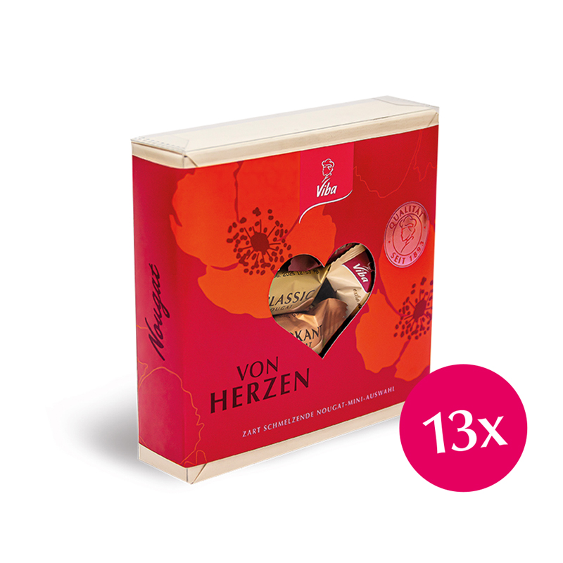 Ob als kleine Aufmerksamkeit, süße Liebesbotschaft oder feiner Genussmoment für sich selbst – die Viba Von Herzen Nougat-Minis machen jede Geste noch ein bisschen liebevoller.