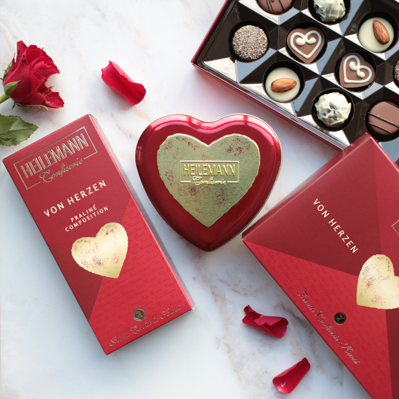 Unsere neue Geschenk-Serie „Von Herzen“ bietet viele Möglichkeiten, seinen Liebsten eine Freude zu machen. Von der kleinen Aufmerksamkeit mit kleinen Herzen aus Edelvollmilch-Schokolade bis zur edlen Präsentdose, gefüllt mit feinsten Haselnuss-Nougat-Kugeln.