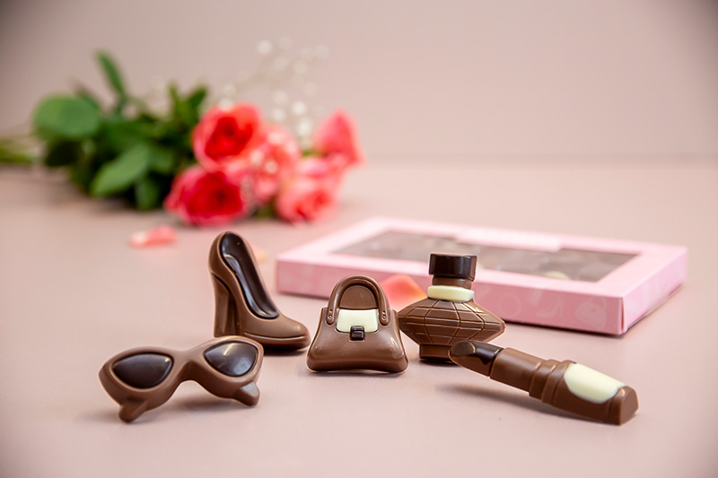 Wir haben ein Girls-Set zusammengestellt aus einer edlen Parfümflasche, einer Handtasche, einem Lippenstift, einem High-Heel sowie einer stylischen Sonnenbrille. Diese Figuren sind nicht nur aus feinster Vollmilchschokolade und verziert mit weißer und Edelbitter-Schokolade, sondern schaffen auch ohne Anlass ein Lächeln ins Gesicht.