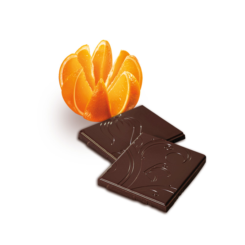 Zutaten: Kakaomasse, Zucker, Kakaobutter, Orangenpulpe (2,5 %)(Orangensaftkonzentrat, Zucker, Apfel, Dextrose, Ananas, Säuerungsmittel: Zitronensäure;Geliermittel; Natriumalginat, Stabilisator: Calciumphosphate; natürliches Orangen-Aroma), Emulgator: Lecithine (SOJA).
