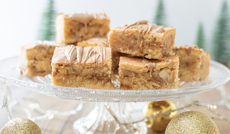Feines Aroma: mit seinem angenehmen Geschmack nach Karamell verleiht die Caramel Blond Chocolate Pur diesem Gebäck das besondere Etwas. Die weiße Schokolade macht die Blondies besonders zart. Hier geht es zum Rezept.