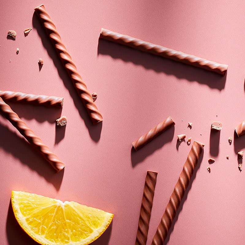 Verwöhne dich mit einem fruchtigen Schokoladen-Genuss der Extraklasse, mit unseren Feinen Orangen-Stäbchen von HUSSEL!