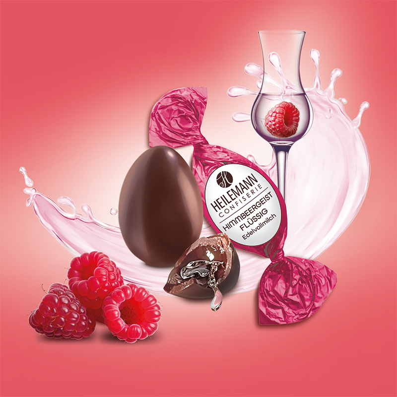 Gefüllt mit flüssigem Himbeergeist und umhüllt von knackiger Vollmilchschokolade schmeckt das Himbeergeist Ei sehr intensiv und vollmundig. Lassen Sie sich überraschen, wie dieser Hochgenuss auf Ihrer Zunge zergeht. Die Edelvollmilch-Schokolade entfaltet ihr Aroma nach dem Aufknacken und anschließend fließt die Himbeergeist Füllung über Ihren Gaumen. Diese Schoko-Eier schmecken köstlich und aromatisch und sind für gelegentliche Genießer, aber auch für jahrelange Himbeergeist-Kenner, die perfekte Nascherei für das Osternest.