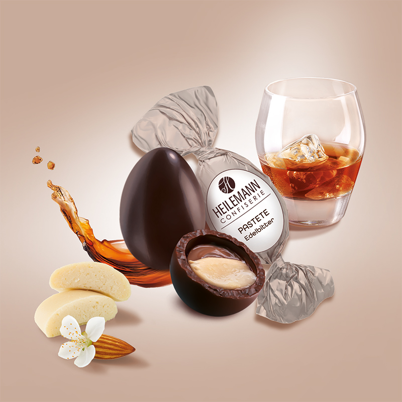 Eine feinherbe sowie knackige Schokoladenspezialität mit einer Marzipan-Rum-Trüffel-Füllung. Ein genussvolles Stück Ostern für zu Hause, das mit würzig-exotischem Aroma die Sinne verwöhnt. Die Verbindung von Rum und Zartbitterschokolade zergeht auf der Zunge zu einem ganz besonderen Geschmackserlebnis. Der leichte Alkoholgehalt macht das Pastete Ei zum Liebling vieler erwachsener Naschkatzen.