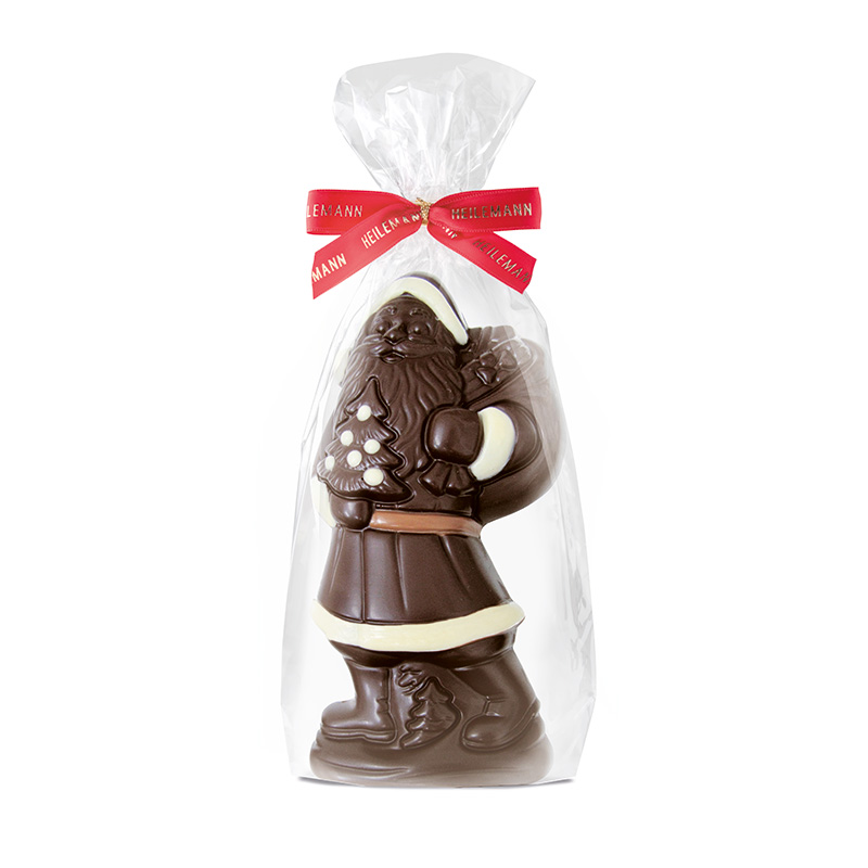 Was wäre Weihnachten ohne den Heilemann Weihnachtsmann? Mit Liebe zum Detail wurde der freundliche Weihnachtsmann für Liebhaber zart schmelzender Edelbitter-Schokolade kreiert. Der feine Schmelz der Schokolade und die liebevoll durchdachten Details machen den Weihnachtsmann so einzigartig. Dekoriert mit weißer und Edelvollmilch-Schokolade an Gürtel, Mantel, Bart und Tanne. Als Dekoration in der Weihnachtszeit oder im Nikolausstiefel erwachsener Nachkatzen darf dieser handdekorierter Weihnachtsmann nicht fehlen.