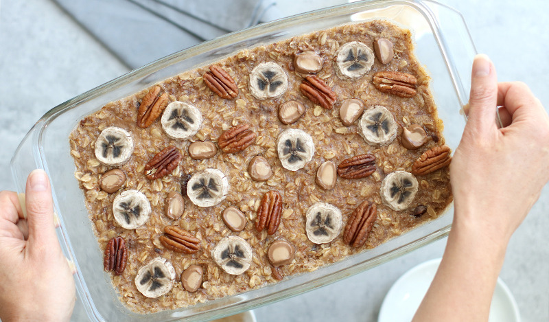 Rezept: Nougat Oatmeal mit Bananen, Pekanüssen und Schicht-Nougat