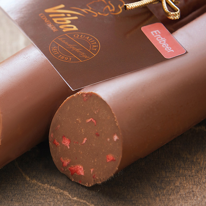 Ein fruchtig frisches Geschmackserlebnis zu jeder Jahreszeit! Frische, gefriergetrocknete Erdbeerstückchen umhüllt von zart schmelzendem Viba Nougat vereinen sich zum einzigartigen Genussmoment!