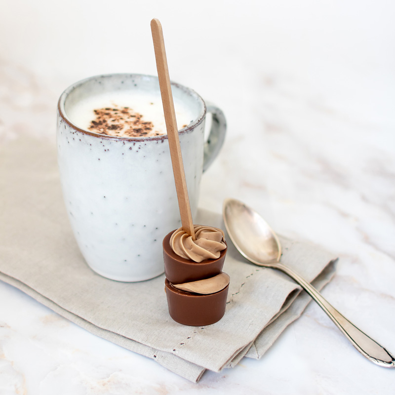 Die Pralinen am Stiel in Form von Tässchen aus Vollmilchschokolade mit Royal Nougat Füllung werden in der Viba Confiserie liebevoll von Hand gefertigt und lösen sich in heißer Milch im Handumdrehen auf. Ein Genussmoment der besonderen Art für alle, die Viba Nougat nicht nur zum Naschen, sondern auch zum Trinken lieben.
